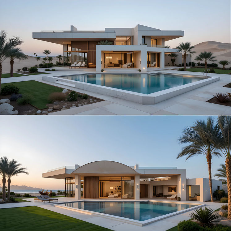 Set against the majestic backdrop of Saudi Arabia's vast desert landscapes, this collection of private villas offers an extraordinary retreat that blends luxury with nature. Each villa features a private pool, a sprawling park, and an immersive garden filled with native date palms and other regional species. The serene outdoor patios are shaded by elegantly draped sail fabric tents, creating a perfect haven for relaxation. Designed with an impeccable sense of harmony, the interiors express luxury while ensuring a seamless connection with the surrounding desert environment. Every space is thoughtfully crafted to enhance the experience of desert living, offering a sanctuary where modern comfort meets the natural beauty of the land. Developed by Blend Studio for ALHULM a group of private investors, these villas embody the perfect integration of the soul of Saudi Arabia's unique landscape.